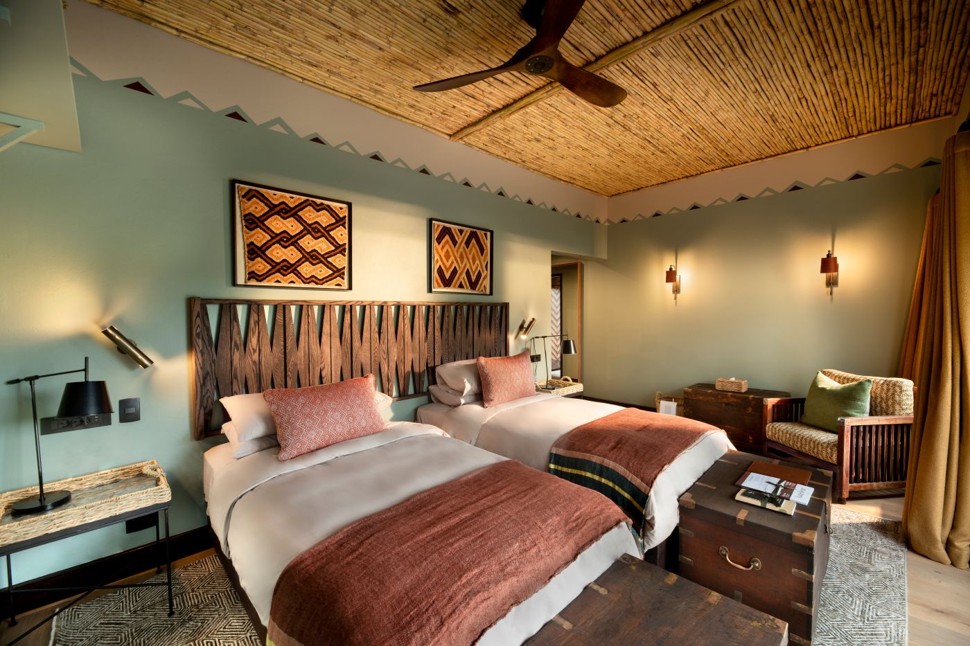 Bordered by lush green valleys and densely wooded hills studded with aloes, andBeyond Phinda Zuka Lodge sits in the west of the reserve. With just four thatched Zululand bush suites, this intimate lodge is ideal for family gatherings and special occasion safaris and can be booked as a sole use villa or for individual room bookings. Characterised by hues of blue and stone, with a strong emphasis on shape and texture, Zuka’s overall ambiance is that of cool, coastal bush style embodying the sophistication of simplicity.