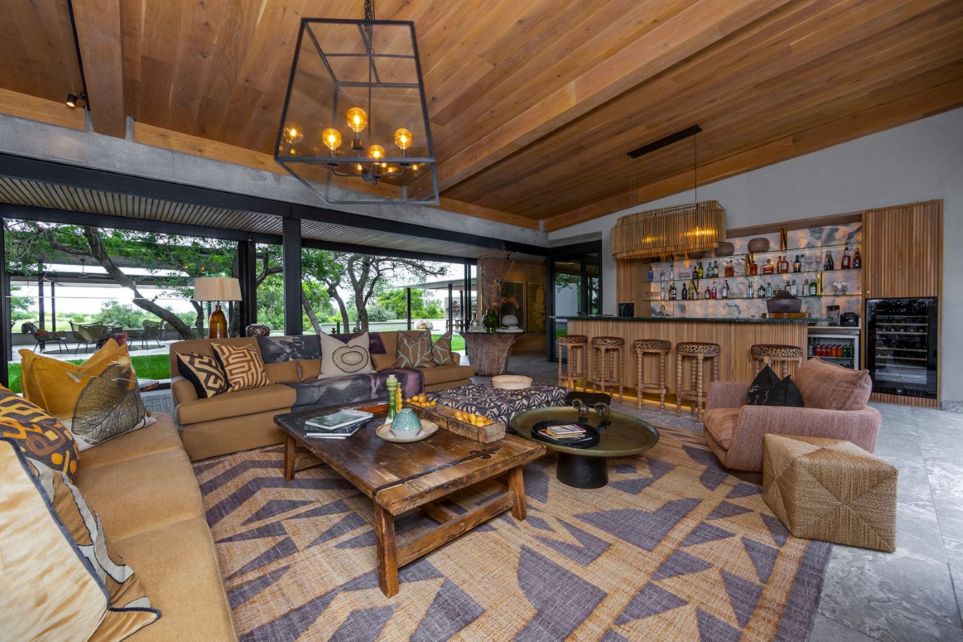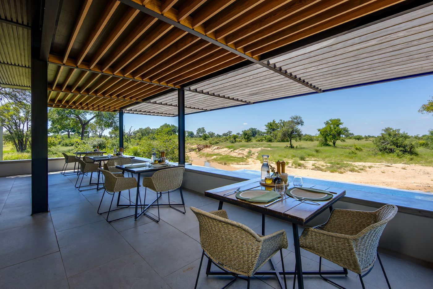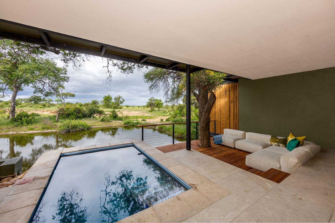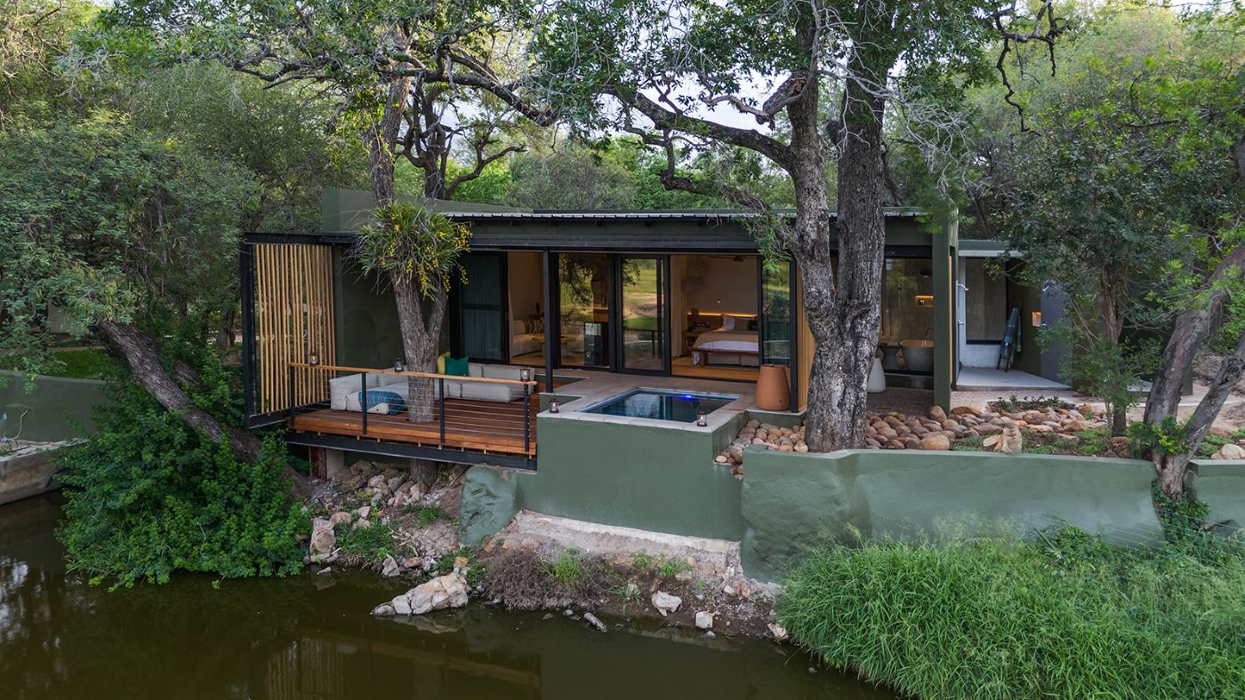 The architect and interior designer of RockFig Safari Lodge were inspired by the Timbavati setting of this luxury South African safari lodge to create a relaxed ambience with indoor and outdoor guest spaces that segue into each other, and enable both communal and private moments suffused with an authentic bush feel.