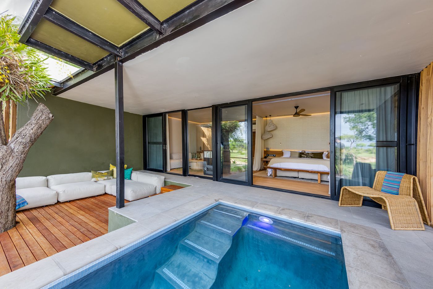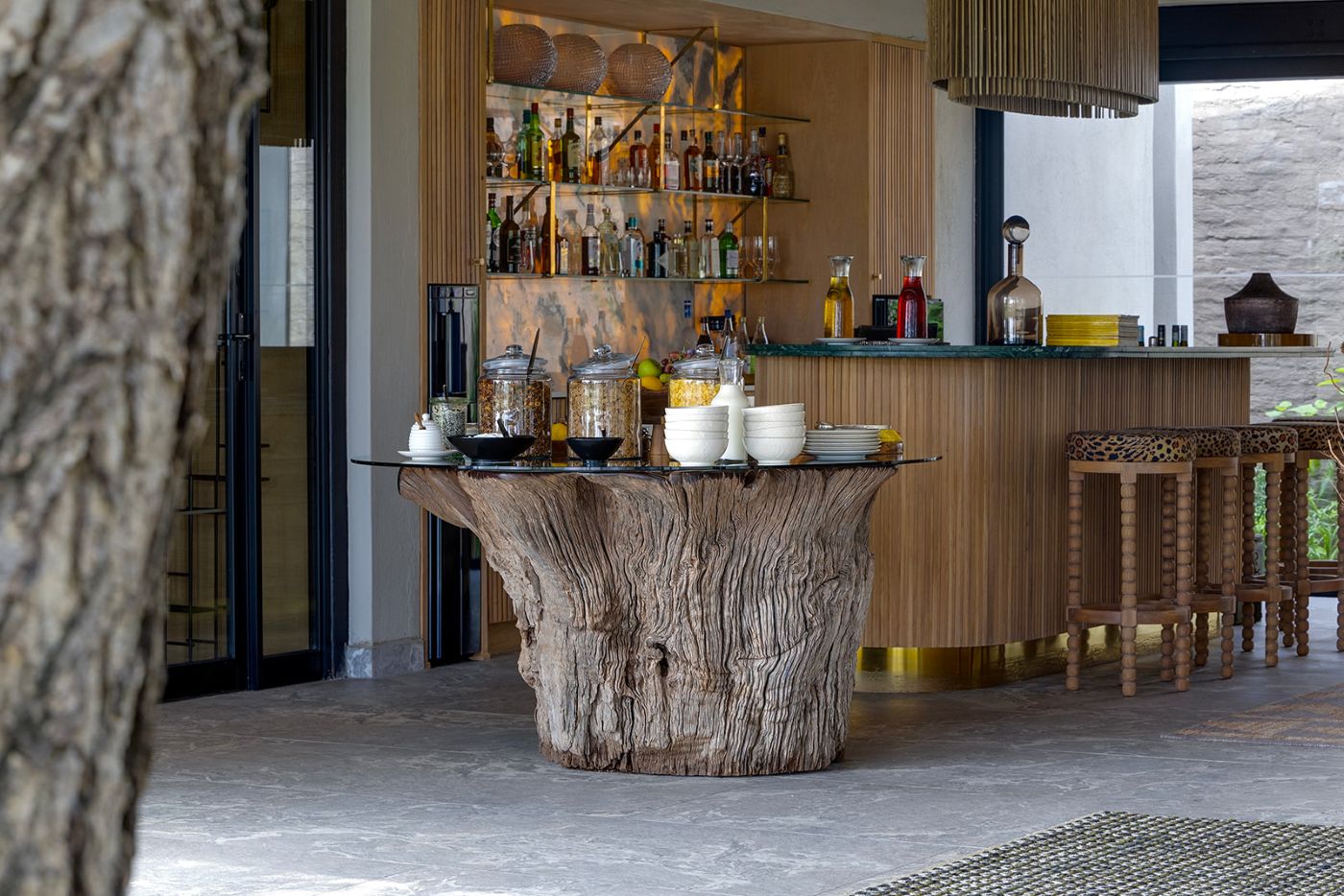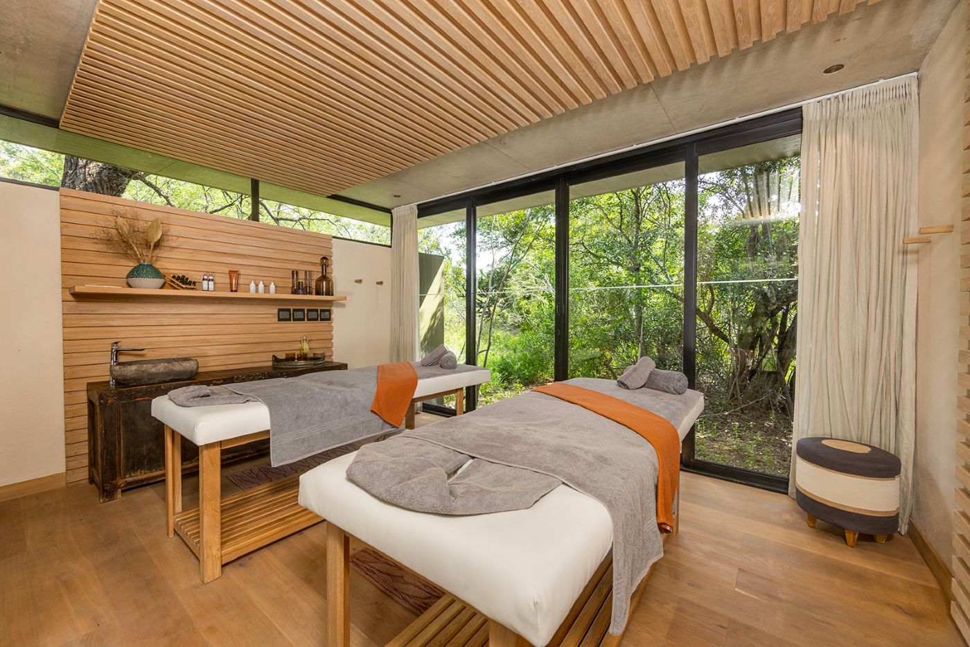 The architect and interior designer of RockFig Safari Lodge were inspired by the Timbavati setting of this luxury South African safari lodge to create a relaxed ambience with indoor and outdoor guest spaces that segue into each other, and enable both communal and private moments suffused with an authentic bush feel.
