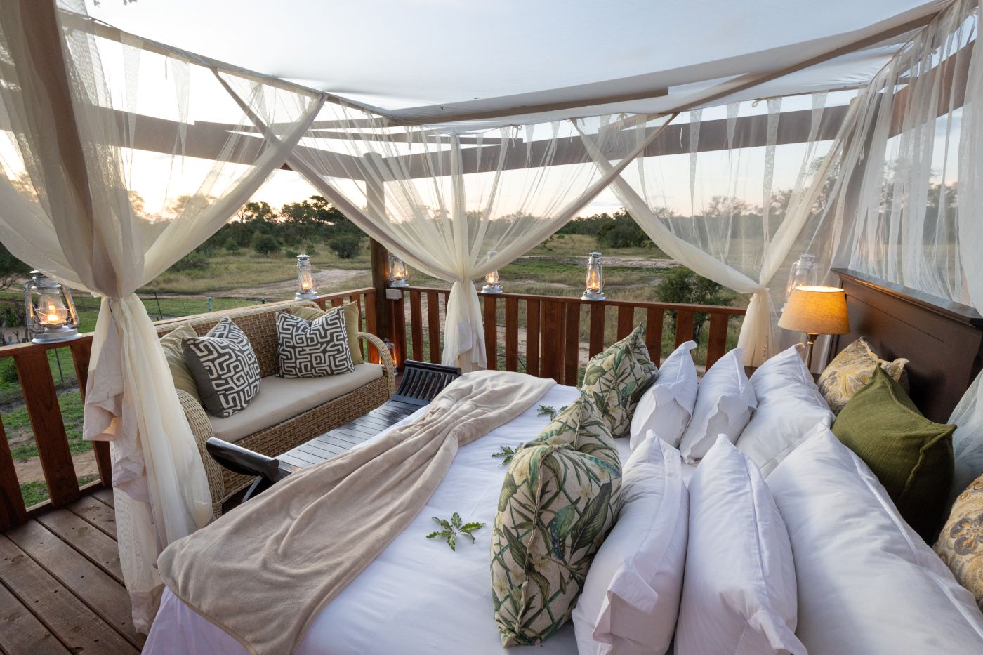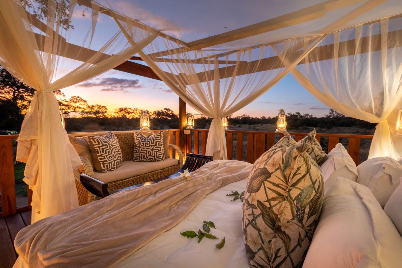 Game viewing at Tintswalo takes place on foot or in individually seated open game vehicles. The vehicles are fully equipped with spotlights for night viewing, radios for communication, mosquito repellent, ponchos for wet weather, and individual blankets to keep guests cosy if nights turn chilly. Guests are ensured to enjoy a truly five-star wildlife-viewing experience at Tintswalo Manor House by placing a canvas ‘goody’ bag containing binoculars, reference books, and treats on each seat for their use before the drive begins. Walks in the reserve are guided through the ever-changing environment of the African bush. This experience allows you the opportunity to come away with information on local wildlife, and insight into the local Shangaan traditions. All of our experienced and professional guides are fully accredited, and are always accompanied by skilled trackers who know their surroundings well. Afternoon game-viewing is followed by a sunset sun-downer stop, and your day is perfectly rounded off with a magnificent candlelit dinner.