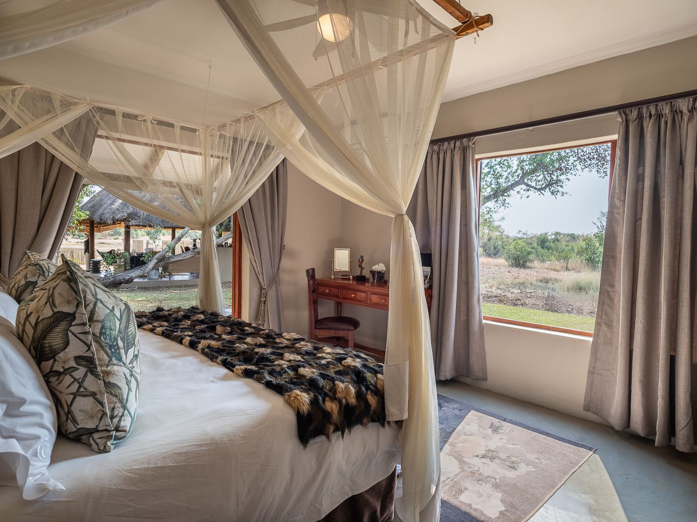The magnificent Manor House offers an intimate four-star family holiday haven, located along the banks of the seasonal Nwaswitsontso River. Unique in its design, the Manor House provides ideal shared ‘holiday home’ style accommodation for up to 10 guests. This splendid setting provides supreme comfort, privacy, and an opportunity for effortless birding, as well as the chance to view a large variety of big game that frequents the watering hole in front of Manor House. The Manor House staff is on call to meet your needs, and a safari vehicle, guide, and tracker are allocated exclusively to you for the duration of your stay.